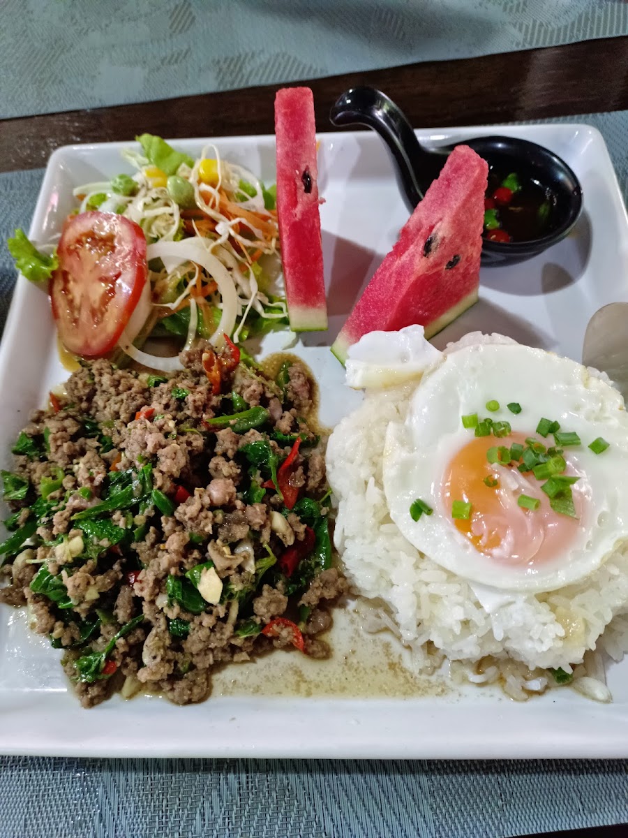 The dining experience here is straightforward and comfortable, with options for both indoor and outdoor seating that suit families as well as small groups of friends. People who come tend to appreciate straightforward, well-cooked food crafted from fresh ingredients — from classic dishes like stir-fried chicken with holy basil and fried egg to hearty portions of Thai-style chicken biryani. Portions lean toward generous, so it’s a good spot for those with a hearty appetite.
